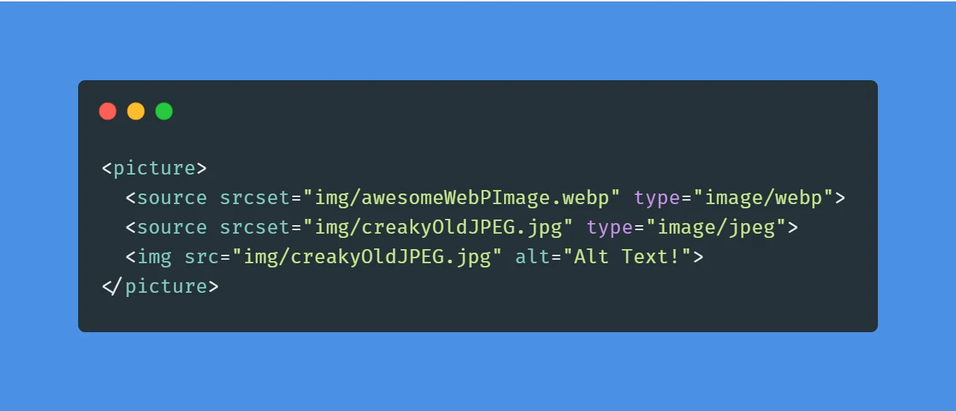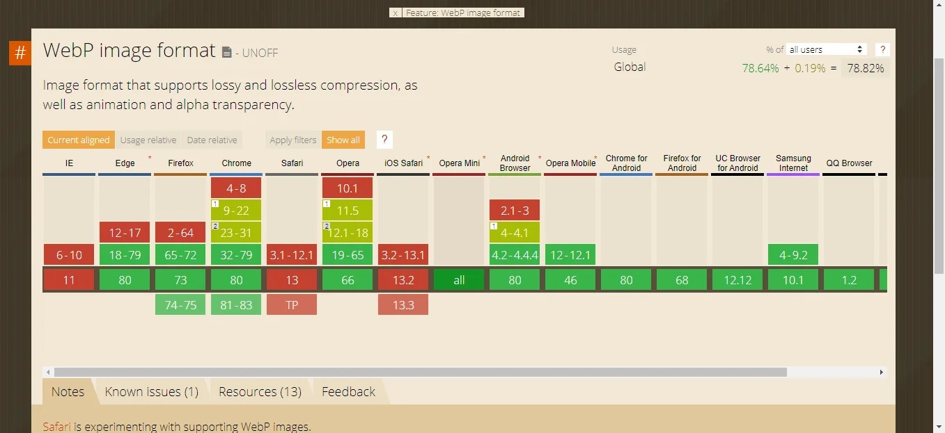 As you can see, Safari and IE are not currently supported. This means you should have a fallback option for incompatible browsers. The code snippet below is the most commonly used implementation of WebP images to support all browsers.