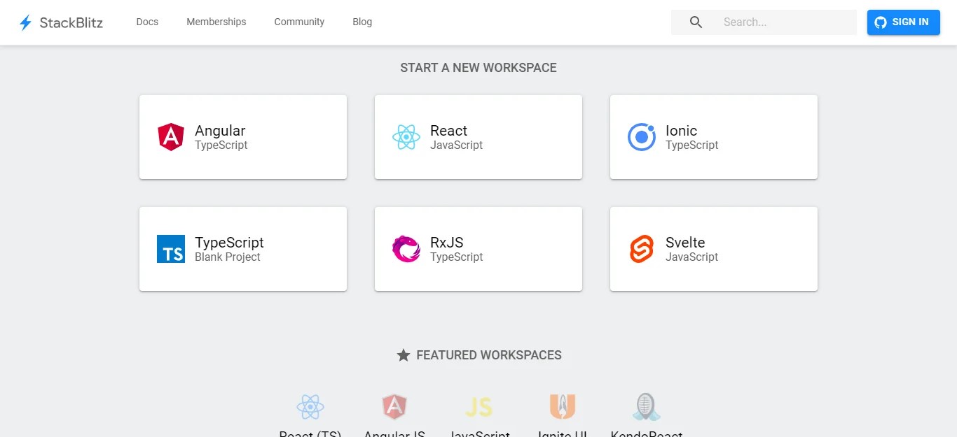 StackBlitz allows you to set up your Angular, React, Ionic, TypeScript, RxJS, Svelte, and other JavaScript frameworks with just one click. You can start coding in less than five seconds because of this handy feature.
